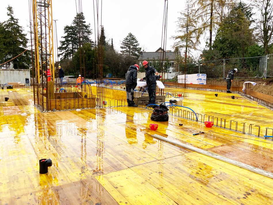 Aktueller Baufortschritt: Die Decke des Untergeschosses wird geschalt.