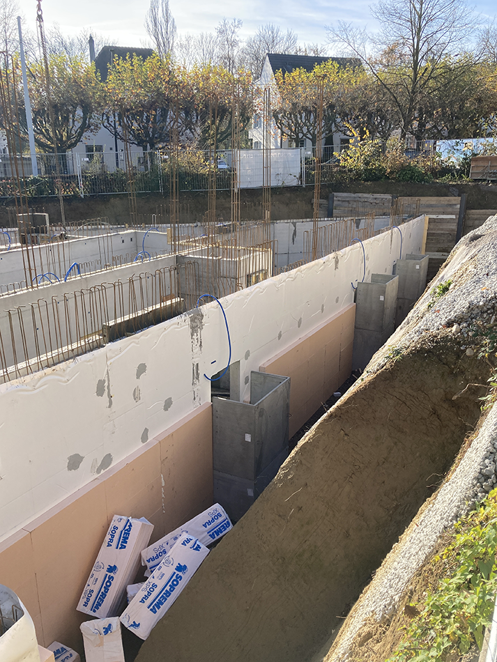 Die Wände im Untergeschoss wurden bereits betoniert und ausgeschalt.